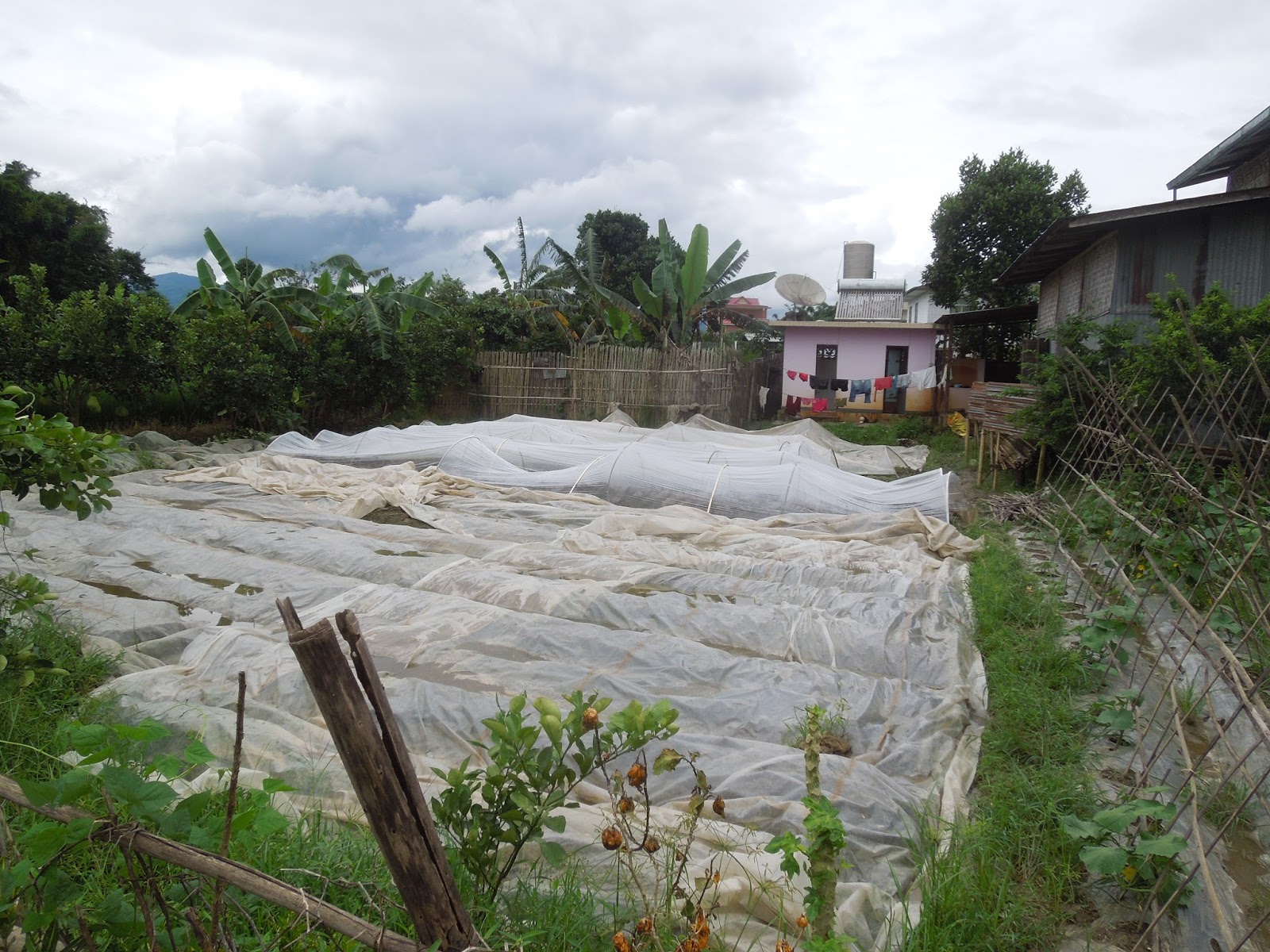Walking around here most of what I could see was farming activity, lots of houses had a plastic tents coming off the side with seeds spread out underneath and a couple had a barn area for cows. The standard of living here was pretty mixed, with everything from wood plank shacks to nice looking modern houses with antennas on top. From appearance alone it would be difficult to determine that this was a Dai Village, the only indicator for me was that none of the people I ran into were speaking Mandarin but instead dialect.